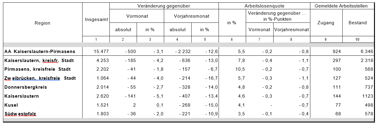 Arbeitsmarkt in Stadt und Kreis Kaiserslautern – November