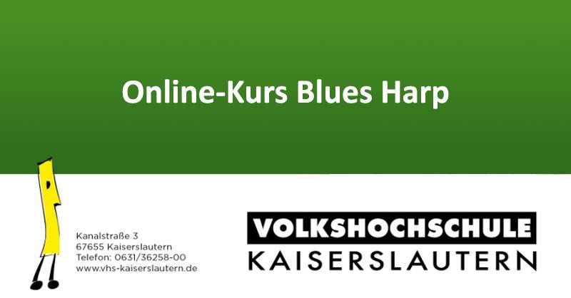 Die Volkshochschule Kaiserslautern bietet am Samstag, dem 08.01.2022, von 12:00- 18:00 Uhr, einen Online-Kurs „Blues Harp“ unter Leitung von Kay Steffens an.