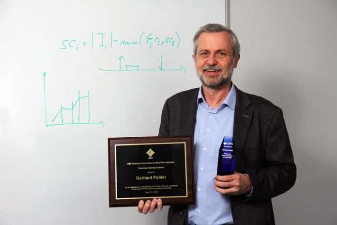 Gleich mit zwei Auszeichnungen ist Professor Dr. Gerhard Fohler von der Technischen Universität Kaiserslautern (TUK) für seine Arbeiten im Gebiet der Echtzeitsysteme gewürdigt worden: Vom Technischen Komitee für Echtzeitsysteme der Euromicro Conference on Real-Time Systems (ECRTS) ist er mit dem ECRTS Outstanding Achievements Award geehrt worden. Zudem hat ihm das Technical Committee on Real-Time Systems vom weltweiten Ingenieursverband Institute of Electrical and Electronic Engineers des (IEEE) den Technical Service Award verliehen. Beide Auszeichnungen wurden zum ersten Mal vergeben und unterstreichen Fohlers herausragende Leistungen auf diesem Gebiet.