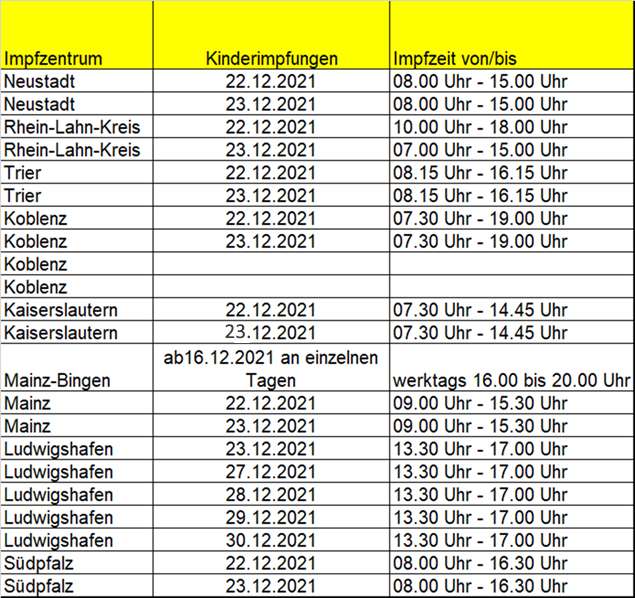 Die Europäische Arzneimittelbehörde (EMA) hatte in der vergangenen Woche empfohlen, den Impfstoff des Mainzer Unternehmens BioNTech für Impfungen von Kindern im Alter von fünf bis einschließlich elf Jahren zuzulassen. Mit einer Entscheidung der EU-Kommission wird in den kommenden Tagen gerechnet, so dass ab Mitte nächster Woche der Impfstoff im Land verfügbar sein soll. „Wir wollen direkt ab dem 16. Dezember die Kinderimpfungen in den Impfzentren des Landes starten. Das ist ein weiterer Mosaikstein in der Impfkampagne des Landes und eine Möglichkeit für Eltern, ihre Kinder effektiv vor Corona zu schützen“, sagte Gesundheitsminister Clemens Hoch. Terminregistrierungen über das Impfportal des Landes seien seit dem 1. Dezember möglich. Seitdem wurden rund 20.000 Kinder registriert. Diese werden alle dieses Jahr noch einen Termin für einen besonderen Familienimpftag bekommen. Eltern, die mit ihren Kindern zu einem solchen Familienimpftag kommen, werden dort zusätzlich für sich eine Auffrischungsimpfung angeboten bekommen, sofern die zweite Impfung mehr als fünf Monate zurückliegt. Eine zusätzliche Anmeldung dazu ist nicht notwendig.