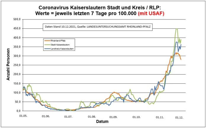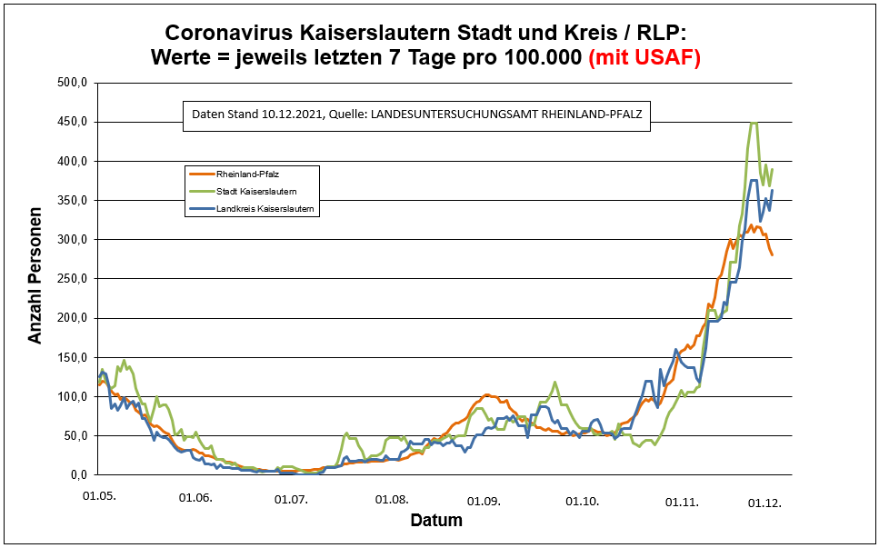 D USAF = U.S. Armed Forces; Berechnung der Inzidenz /100.000 unter Berücksichtigung der mit Stand vom 18.10.2021 in der Gebietseinheit stationierten U.S. Streitkräfte