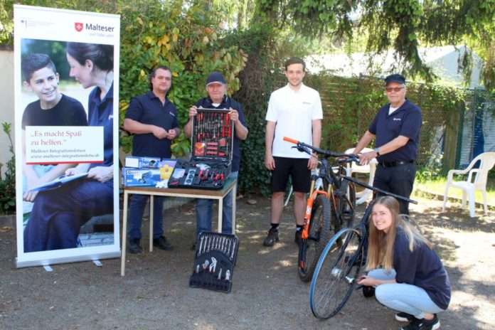 Foto (2): Die mobile Fahrradwerkstatt erfreut sich nach wie vor großer Beliebtheit. (Quelle: Malteser Kaiserslautern)