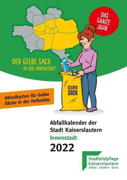 Vom 20. bis 24. Dezember 2021 lässt die Stadtbildpflege Kaiserslautern (SK) den städtischen Abfallkalender für das Jahr 2022 als Hauswurfsendung im Stadtgebiet verteilen. Haushalte und Gewerbebetriebe, die keinen Kalender erhalten, können diesen ab dem 27. Dezember unter der Telefonnummer (0631) 365-3850 nachfordern. Ab diesem Zeitpunkt liegen die Abfallratgeber auch kostenfrei zur Mitnahme in den städtischen Wertstoffhöfen, im Bürgercenter des Rathauses und bei den Stadtwerken Kaiserslautern (SWK) in der Bismarckstraße 14 aus.