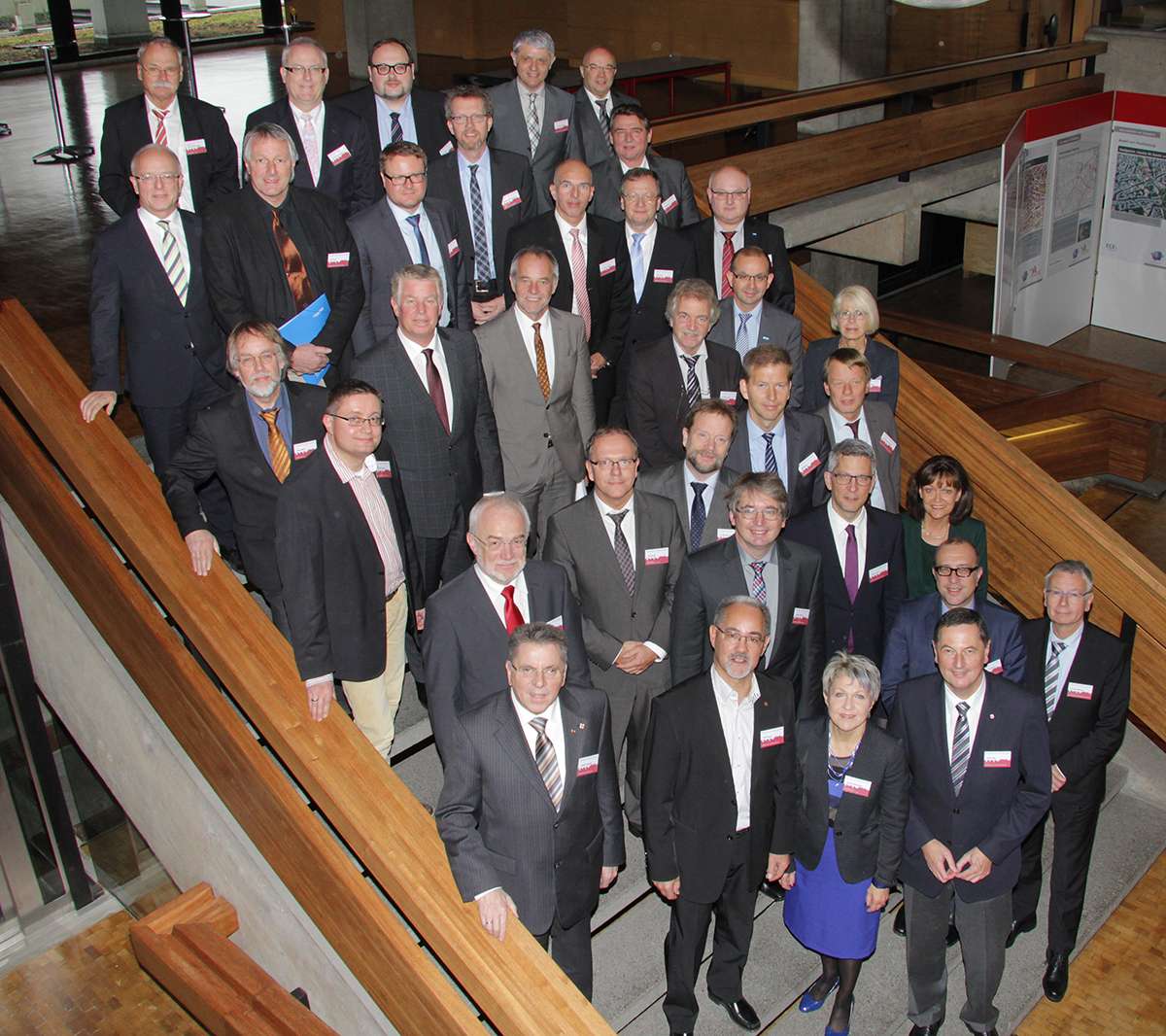Das Foto zeigt die Teilnehmerinnen und Teilnehmer der Kommunalkonferenz am 21. November 2014 im Rathaus von Kaiserslautern, wo das Bündnis seine bundesweite Arbeit aufnahm.