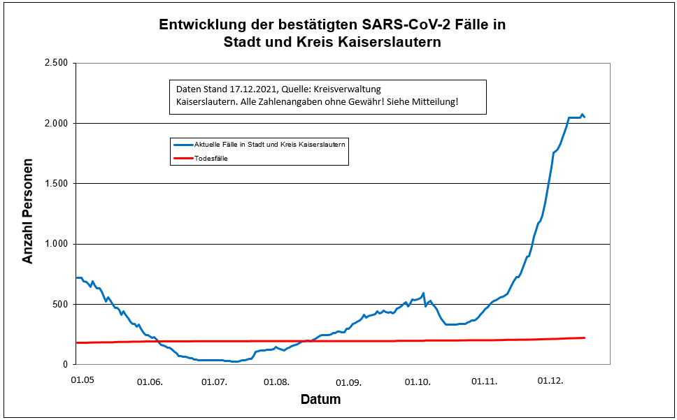 Corona-Zahlen für die Stadt und den Landkreis Kaiserslautern – Zeitraum 13.12.- 17.12. können Sie dieser Statistik entnehmen: