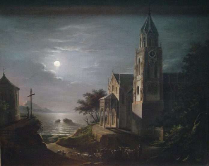 Bu: Tierherde ist mit dabei: Johann Christian von Mannlichs „Kirche am See“ von 1821