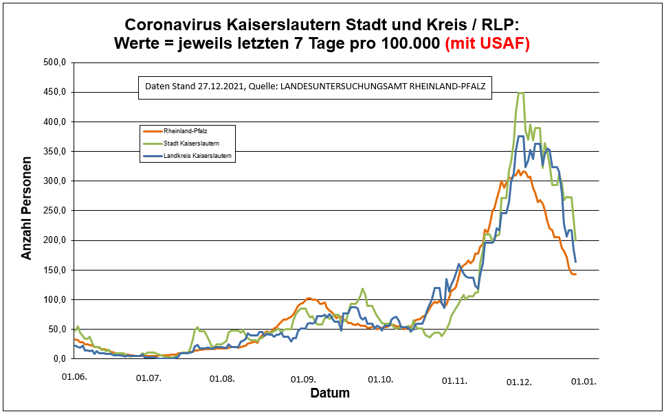 Coronavirus SARS-CoV-2: Fallzahlen für Rheinland-Pfalz, (Datenstand vom 27.12.2021, 14:10 Uhr)