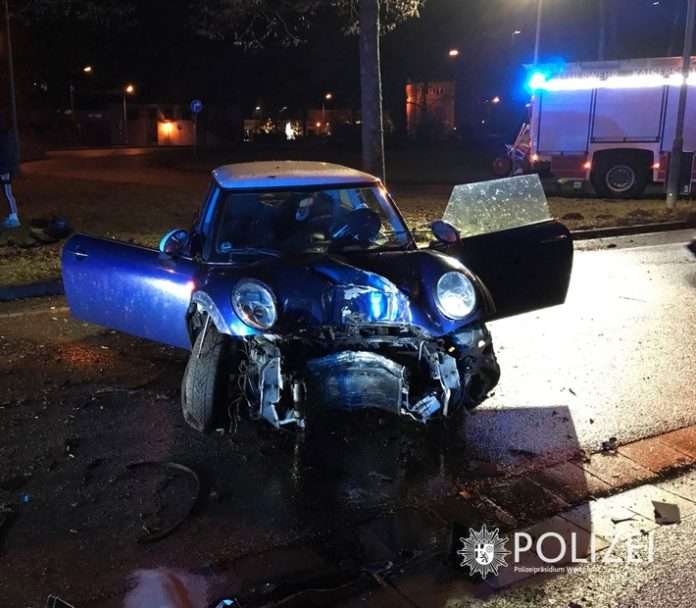 Ein 19-jähriger Autofahrer hat in der Nacht zu Donnerstag auf der Lauterstraße einen Unfall gebaut. Aufgrund von nicht angepasster Geschwindigkeit kam er gegen 00:40 Uhr von der nassen Fahrbahn ab, touchiert den Bordstein und kollidiert frontal mit einem Baum. Das Fahrzeug wurde durch den Aufprall in die Fahrbahnmitte zurückgeschleudert. Der Fahrer konnte sich selbstständig aus seinem Auto befreien. Er wurde in ein Krankenhaus gebracht. An seinem Auto entstand ein so großer Schaden, dass es abgeschleppt werden musste. Die Höhe des Gesamtschadens ist nicht bekannt. Für die Dauer der Unfallaufnahme war ein Teil der Lauterstraße gesperrt. |elz