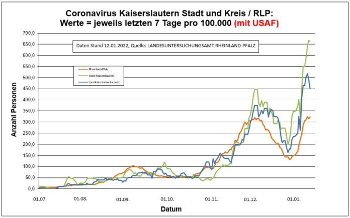 Coronavirus SARS-CoV-2: Fallzahlen für Rheinland-Pfalz, (Datenstand vom 12.01.2022, 14:10 Uhr)