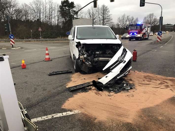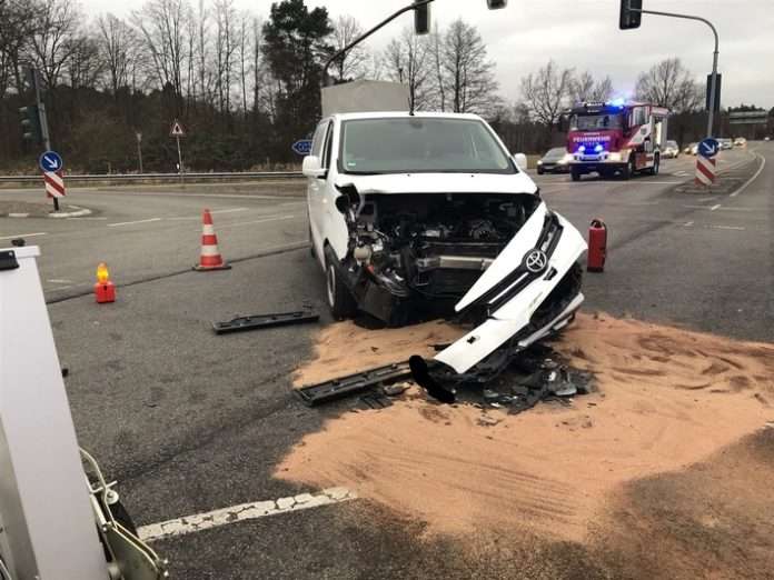 Ramstein, L363 Höhe Rasthof – Am Samstag kurz vor 16 Uhr ereignete sich an der Autobahnabfahrt Ramstein in Höhe des Rasthofes ein Verkehrsunfall bei dem drei Personen leicht verletzt wurden. Nach ersten Erkenntnissen der Polizei befuhr ein 50-jähriger Mann mit seinem Audi die BAB 6 Abfahrt Ramstein-Miesenbach von Kaiserslautern kommend und wollte am Ende der Autobahnabfahrt nach links auf die L 363 in Fahrtrichtung Ramstein-Miesenbach abbiegen. Ein 32 Jahre alter Mann befuhr mit seinem Toyota-Transporter mit Anhänger die L 363 von Ramstein-Miesenbach kommend in Fahrtrichtung Landstuhl. Im Kreuzungsbereich kam es zum Zusammenstoß der beiden Fahrzeuge. Bei dem Unfall wurden die beiden Fahrer sowie die 50-jährige Beifahrerin des Audi-Fahrers leicht verletzt. Es entstand ein Sachschaden von mehreren zehntausend Euro. Die beiden Fahrzeuge mussten abgeschleppt werden. Feuerwehr Ramstein und Rettungsdienst waren auch im Einsatz. Da der Unfallhergang nicht abschließend geklärt ist, bittet die Polizei Landstuhl um Zeugenhinweise.|pilan