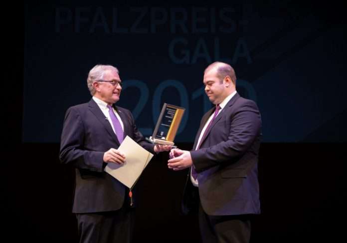 Bu: Erhielt 2019 den Pfalzpreis für pfälzische Geschichte und Volkskunde: der Historiker Dr. Dominik Schindler (rechts) mit dem Bezirkstagsvorsitzenden Theo Wieder