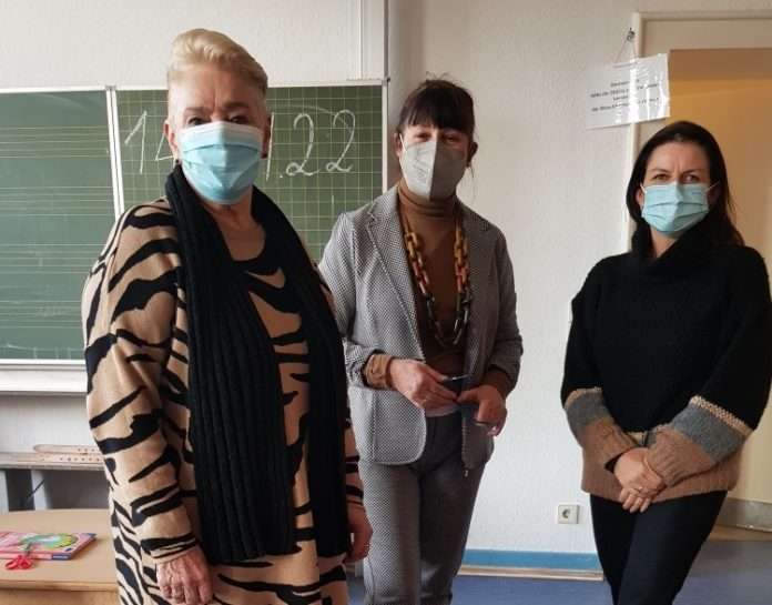 Bildunterschrift (c) Bildungsbüro: Engagiert in Sachen Lesen: Gabriele Helferich-Randall, Waltraud Waurick (v.l.) mit Schulleiterin Petra Müller-Weisenauer.