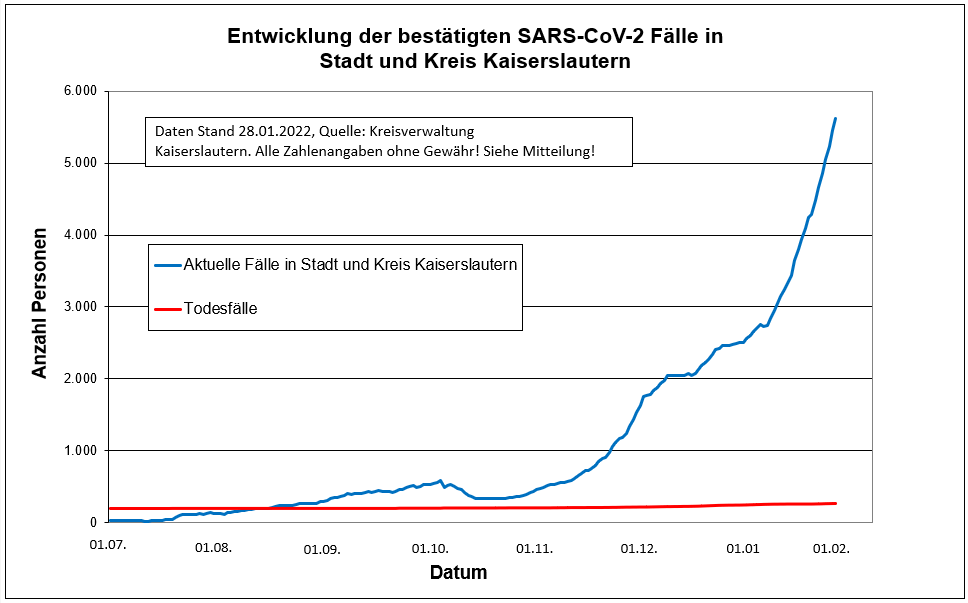 Corona-Zahlen für die Stadt und den Landkreis Kaiserslautern – Zeitraum 24.01.- 28.01. können Sie dieser Statistik entnehmen: