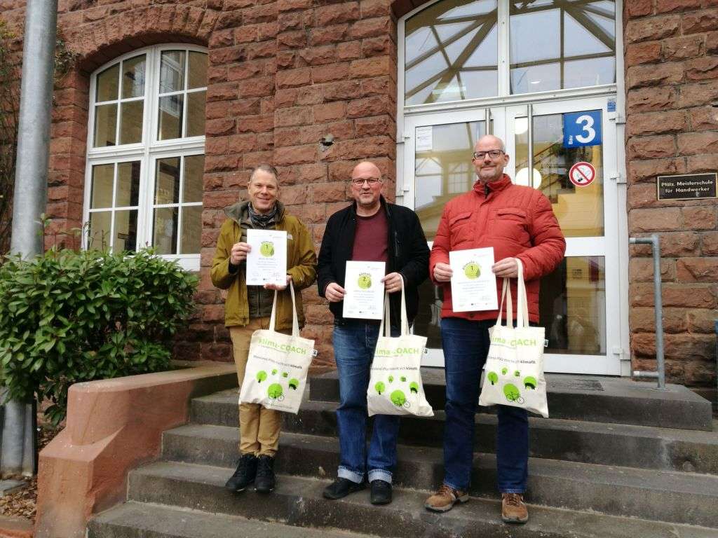 Einzelsieger und Siegerteam beim Klima-Coach-Wettbewerb des Bezirksverbands Pfalz (von links): Mark de Fries, Bauabteilung der Zentralverwaltung, sowie Mario Bissinger und Michael Duda, Meisterschule für Handwerker Kaiserslautern