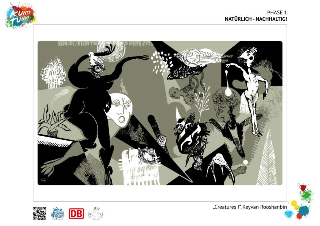 Eines der Plakate in der Kunsttunnel-Ausstellung „Natürlich – nachhaltig!“: „Creatures I“ von Keyvan Rooshanbin
