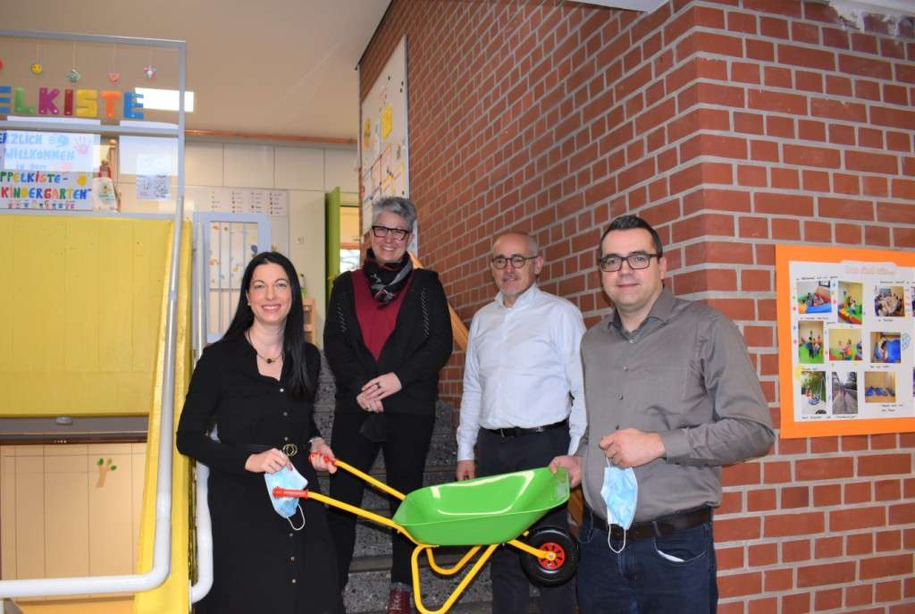 Bild: Beigeordnete Anja Pfeiffer mit Nicole Simgen (Abteilungsleiterin Kindertagesbetreuung), Ludwig Steiner (Referatsleiter für Jugend und Sport) und Werner Butz (Kita-Leitung der Rappelkiste).