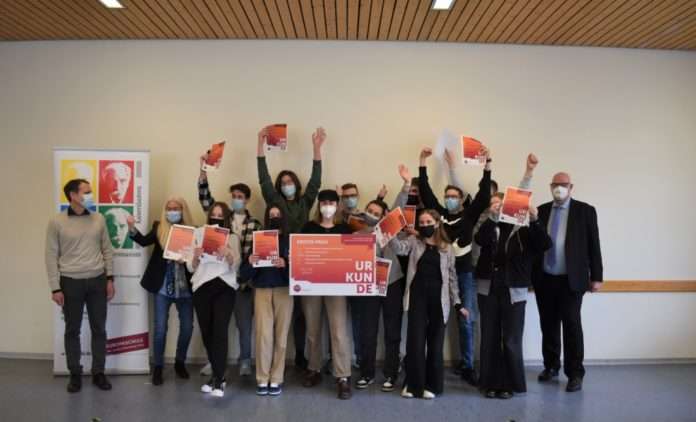 Die Schülerinnen und Schüler können es kaum fassen, als der Leiter des Schülerwettbewerbs, Hans- Georg Lambertz, ihnen plötzlich persönlich gegenübersteht und sie mit ihrem Gewinn überrascht. Die fünftägige Klassenreise nach Berlin ist bereits organisiert und gebucht und soll unter Beachtung coronabedingter Sicherheitsmaßnahmen im Juni stattfinden, sofern die Gesamtumstände dies zulassen.