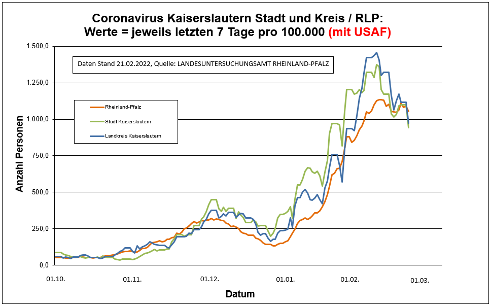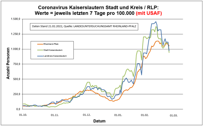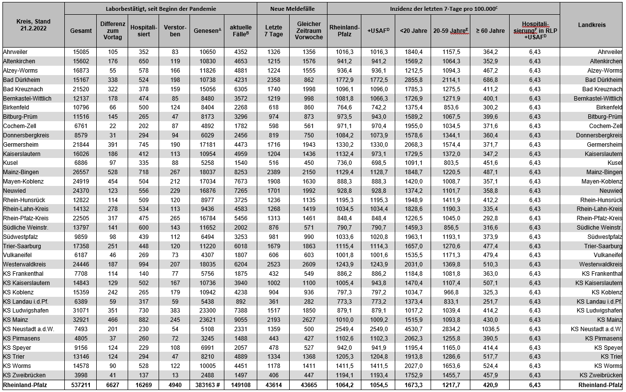 Coronavirus SARS-CoV-2: Fallzahlen für Rheinland-Pfalz, (Datenstand vom 21.02.2022, 14:10 Uhr)