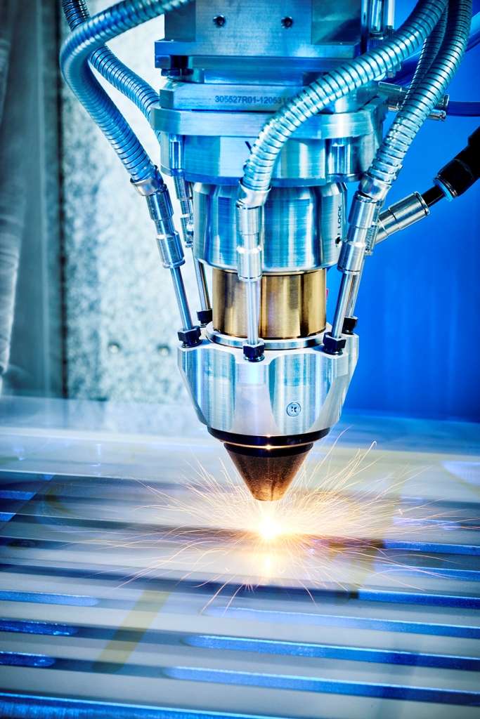 Bei dieser Schweißtechnik wird eine Bauteiloberfläche mithilfe eines Lasers aufgeschmolzen, gleichzeitig bringt eine Düse Metallpulver ein. Dieses schmilzt – und verbindet sich mit der Oberfläche des Bauteils. Schichten mit einer Dicke von 0,01 bis 1,5 Millimeter lassen sich so aufbauen. Die Technik kann auch bei hybriden Verfahren eingesetzt werden: Also, wenn etwas abgetragen und neu aufgetragen wird.