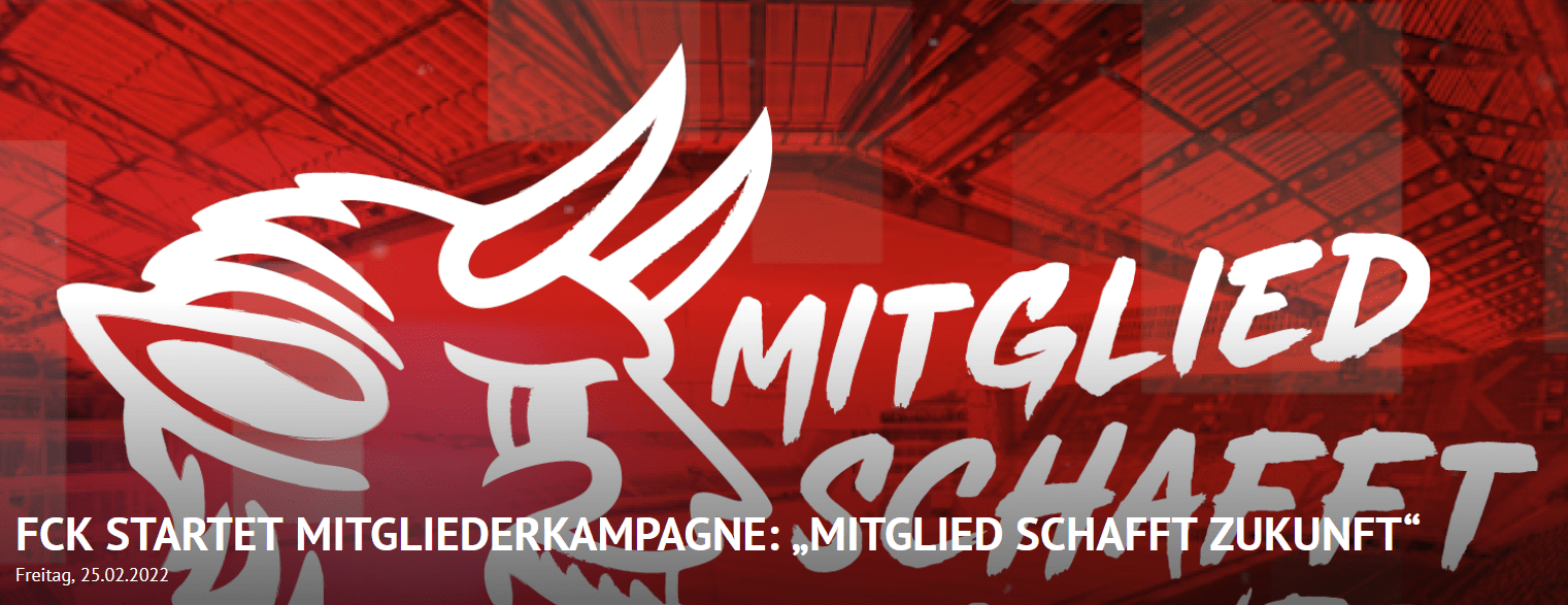 Mit seiner starken Mitgliederbasis hat der FCK das Ziel, den Verein auch in Zukunft positiv aufzustellen und diese Zukunft gemeinsam mit seinen zahlreichen Mitgliedern zu gestalten. Eine Mitgliedschaft beim FCK bedeutet auch ein klares Bekenntnis zum Verein, der für die Mitglieder auch immer ein Stück weit Familie und Heimat bedeutet – vollkommen unabhängig vom Wohnort.