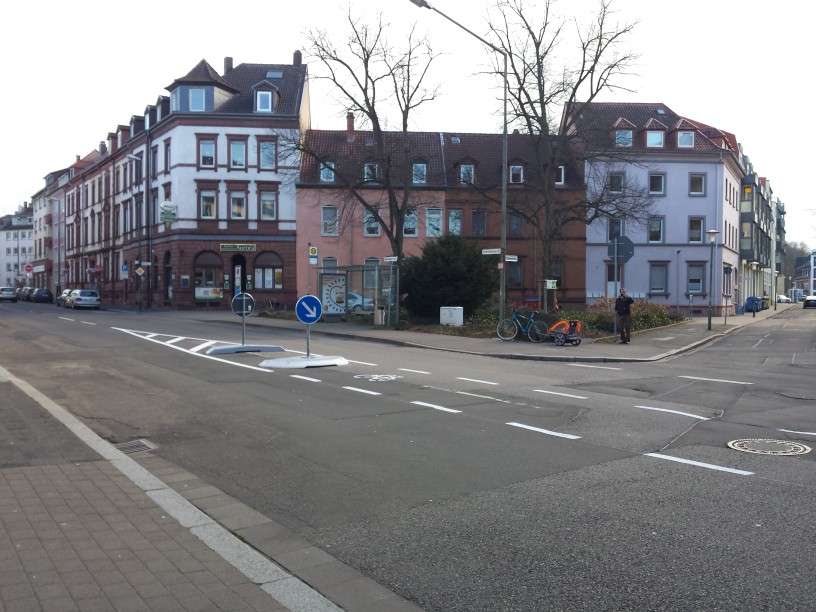 Vor wenigen Tagen wurde die Querungshilfe in der Rudolf-Breitscheid-Straße auf Höhe der Schumannstraße baulich realisiert. Dabei wurden für den Fußverkehr die Bordsteine abgesenkt und durch zwei Inselköpfe ein geschützter Mittelbereich abgegrenzt, für den Radverkehr wurde daneben ein weiterer geschützter Bereich markiert. Die Verbindung von der Schumannstraße über die Rudolf-Breitscheid-Straße zum Musikerplatz wird von Fußgängern und Radfahrern stark genutzt. Mit der Querungshilfe haben beide Gruppen jetzt die Möglichkeit, die Straße sicherer zu queren, da jeweils nur eine Spur passiert werden muss. Die Verbesserung der Querungsmöglichkeiten an stark befahrenen Straßen ist ein grundsätzliches Ziel des Mobilitätsplans Klima + 2030, die Querungshilfe an dieser Stelle ist im Maßnahmenplan für den Fußverkehr als punktuelle Maßnahme ausdrücklich enthalten. Die Maßnahme wurde in Abstimmung der Referate Stadtentwicklung, Tiefbau und der Straßenverkehrsbehörde geplant und durch die Stadtbildpflege umgesetzt.