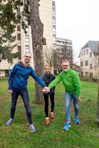 Organspendelauf 1: Thorsten Hemmer (v.l.), Jennifer Höning und Priv.-Doz. Dr. med. Dr. med. habil. Christian Mönch wollen ein Zeichen setzen für die Organspende.