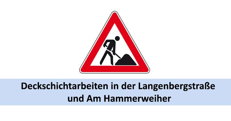 Am Montag, 21. März, beginnen in der Langenbergstraße zwischen Ludwigshafener Straße und Eselsführt sowie in der Straße Am Hammerweiher im Bereich der Zufahrt zum Hotel Blechhammer Deckschichtarbeiten unter Vollsperrung. Während der zweiwöchigen Arbeitszeit werden die Rinnenplatten ausgetauscht und eine neue Asphaltschicht aufgetragen. Eine Umleitung ist während der Arbeiten ausgeschildert, die Grundstücke bleiben damit für die Nutzer sowie möglichen Lieferverkehr anfahrbar.