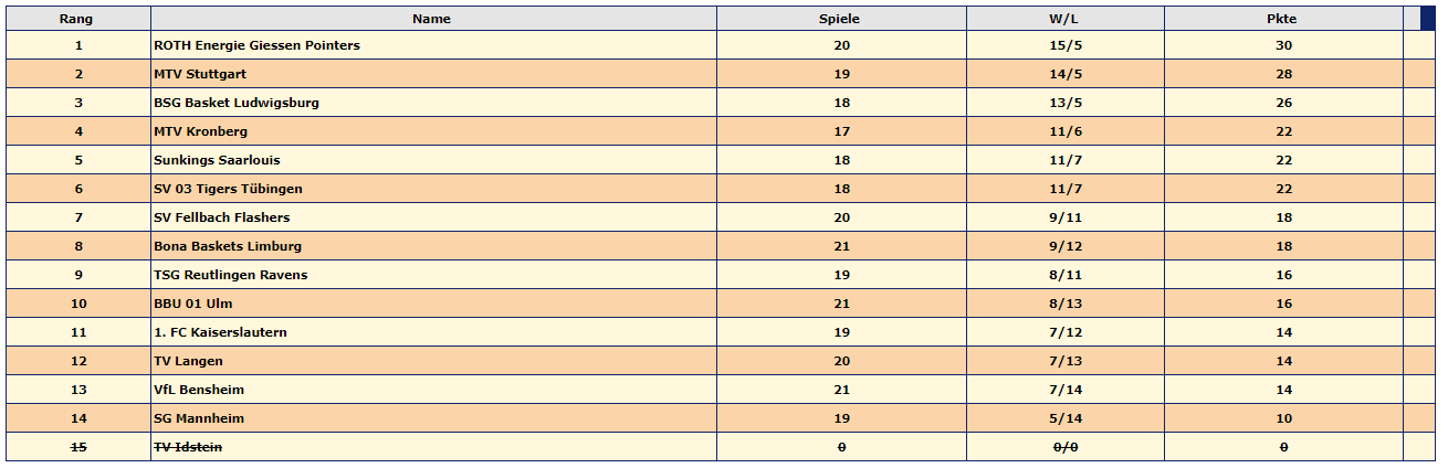 Schon zu Beginn der Begegnung dominierten die Limburger und bendeten das 1. Viertel mit 24:16 für sich. Im 2. Viertel drehte der Gegner nochmals richtig auf und ließen den roten Teufel nur 5 Punkte zu, so dass ein Halbzeitstand von 42: 21 für die Gäste zu Buche stand. Eigentlich war die Spielweise der FCK’ler recht ansprechend, doch die Wurfquote war mit nur 19 Treffern von 74 Würfen katastrophal, so dass ein Herankommen an den Vorsprung der Bona Baskets nicht gelingen konnte. Diese verwandelten die doppelte Anzahl von Treffern, so dass ein Endstand von 90:53 möglich wurde. Es war deutlich zu bemerken, dass Joe Feraci und Victor Onwiduwe fehlten und auch der angeschlagene Matthias Groh sich nicht entfalten konnte. Die Tabelle zeigt deutlich wie eng die Teams zueinander liegen.