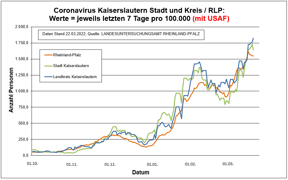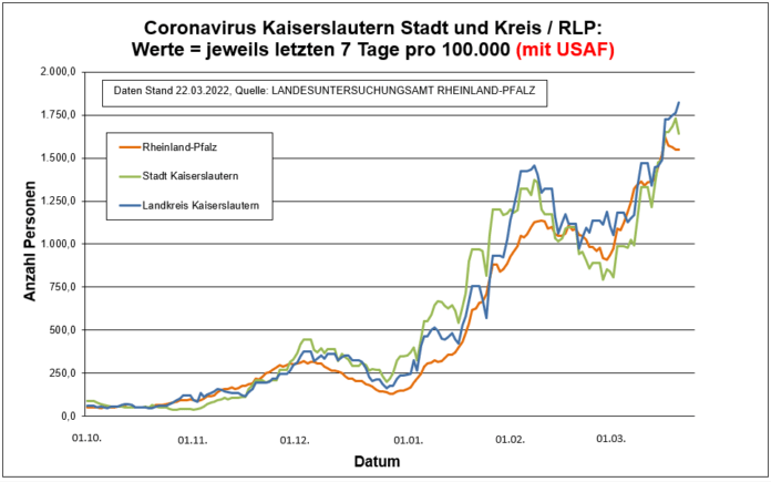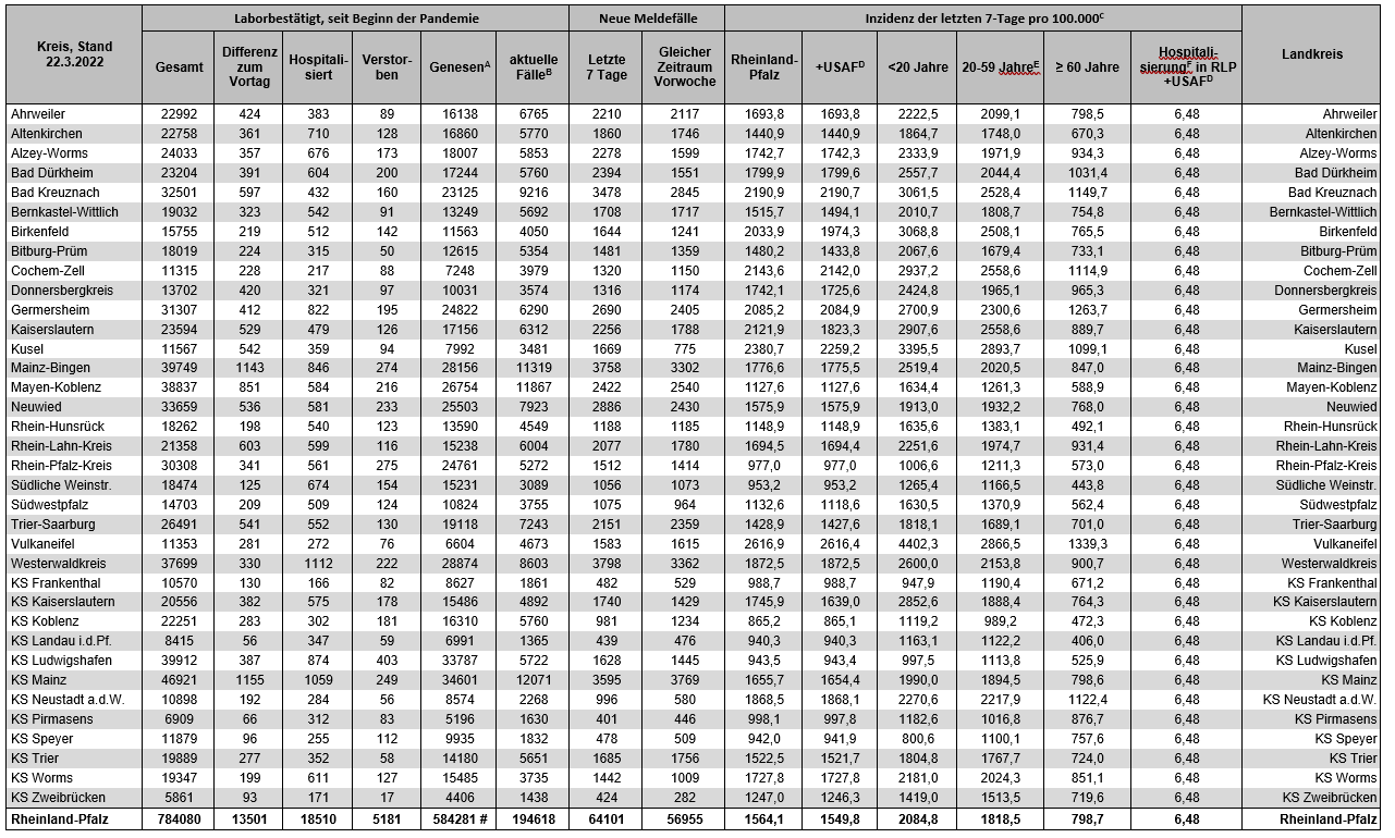 Coronavirus SARS-CoV-2: Fallzahlen für Rheinland-Pfalz, (Datenstand vom 22.03.2022, 14:10 Uhr)