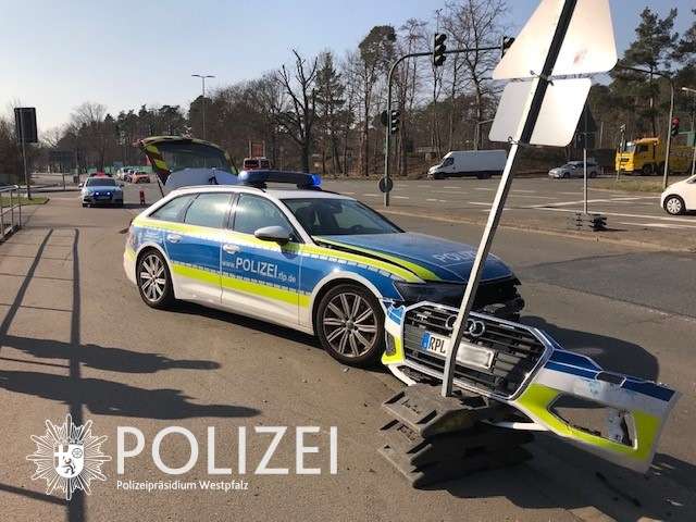 Zum Glück noch einmal glimpflich ausgegangen ist ein Unfall am Mittwochmittag in der Mannheimer Straße mit einem Dienstfahrzeug der Polizei. Die Polizeibeamten waren mit dem Wagen mit eingeschaltetem Sondersignal gegen 14:40 Uhr auf der Mannheimer Straße Richtung Hochspeyer unterwegs. An der Kreuzung Ludwigshafener Straße/Mannheimer Straße bog ein 59-jähriger Mann mit seinem VW Tiguan auf die Mannheimer Straße ein. Er befuhr zunächst den linken Fahrstreifen und wechselte dann auf den rechten. Dabei übersah er den dort fahrenden Streifenwagen. Der Fahrer des Streifenwagens weichte auf den Radweg aus und kollidierte mit zwei Verkehrsschildern. Verletzt wurde niemand. Der Streifenwagen musste abgeschleppt werden. |elz