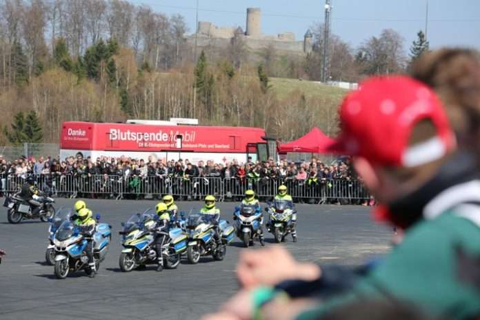Das Motorrad-Experten-Team der Polizei Rheinland-Pfalz unterstützt in Kooperation mit der Polizeiinspektion Adenau und dem Forum Verkehrssicherheit die Auftaktveranstaltung „Anlassen“ am Nürburgring.