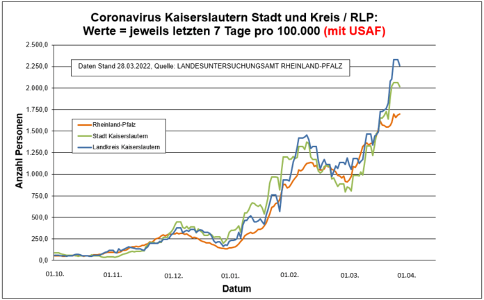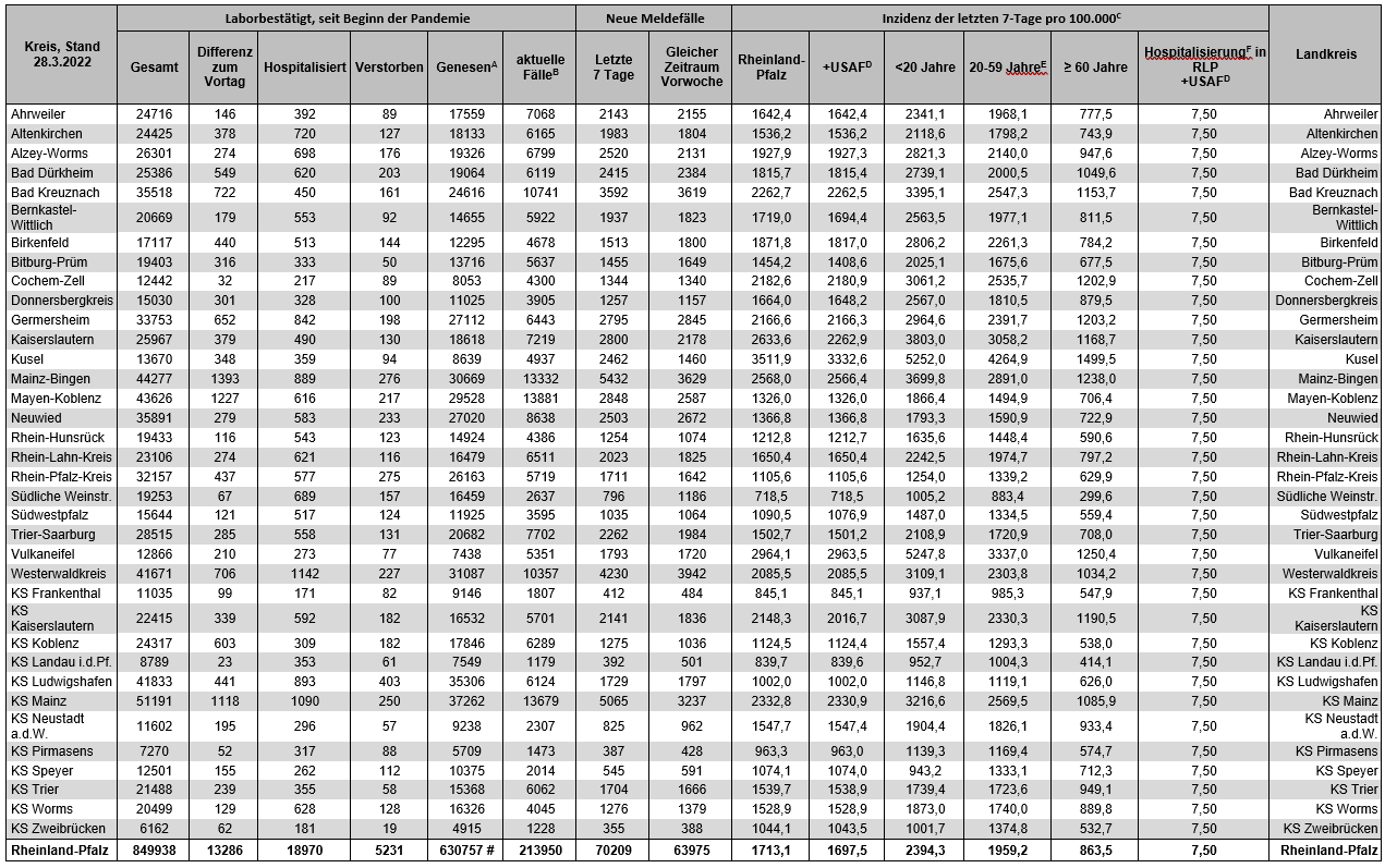 Coronavirus SARS-CoV-2: Fallzahlen für Rheinland-Pfalz, (Datenstand vom 28.03.2022, 14:10 Uhr)