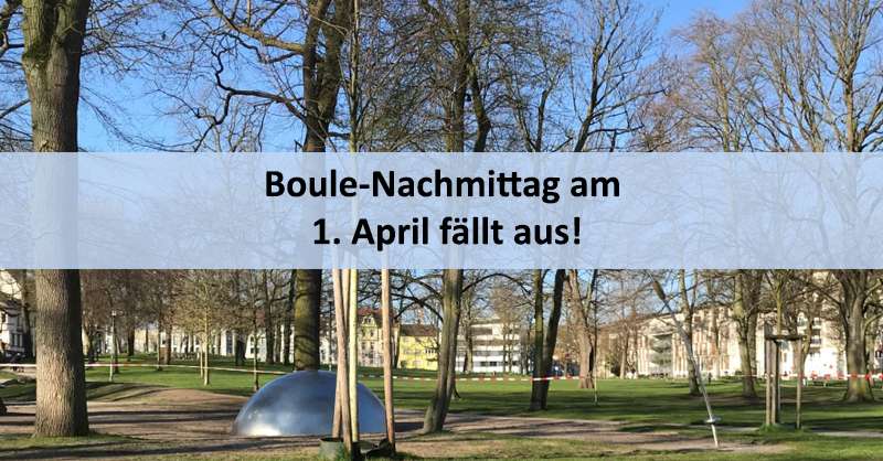 Der vom Seniorenbeirat für den 1. April im Stadtpark geplante Boule-Nachmittag muss leider wetterbedingt verschoben werden. Nach der aktuellen Wettervorhersage betragen am kommenden Freitag die Temperaturen -2 Grad bis +4 Grad. Außerdem ist mit Schneefall zu rechnen.