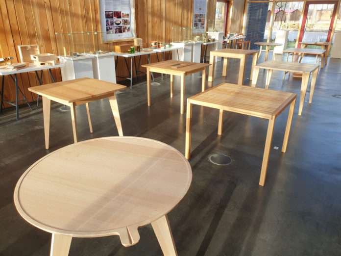 „Aufgetischt – einfach gut!“ heißt die aktuelle Ausstellung, die das Haus der Nachhaltigkeit noch bis Ende Mai in seinen Räumen zeigt. Dabei besteht eine Kooperation mit der Handwerkskammer der Pfalz, der Beratungsstelle Formgebung der Arbeitsgemeinschaft der Handwerkskammern in Rheinland-Pfalz und mit dem Genießerportal VielPfalz mit Printmagazin. Zu sehen sind Exponate von mehr als 20 regionalen Handwerksbetrieben, wobei die meisten aus der Lebensmittelbranche kommen. Gezeigt werden zudem besondere Töpferwaren sowie Arbeiten eines Messerschmieds und einer Korbflechterin (vollständige Liste der Beteiligten). Herzstück der Ausstellung sind neun Tische aus Pfälzer Edelkastanien-Holz, die von Tischler-Auszubildenden gebaut wurden. Die Tische sollen nun nach schriftlichem Höchstgebot versteigert werden.