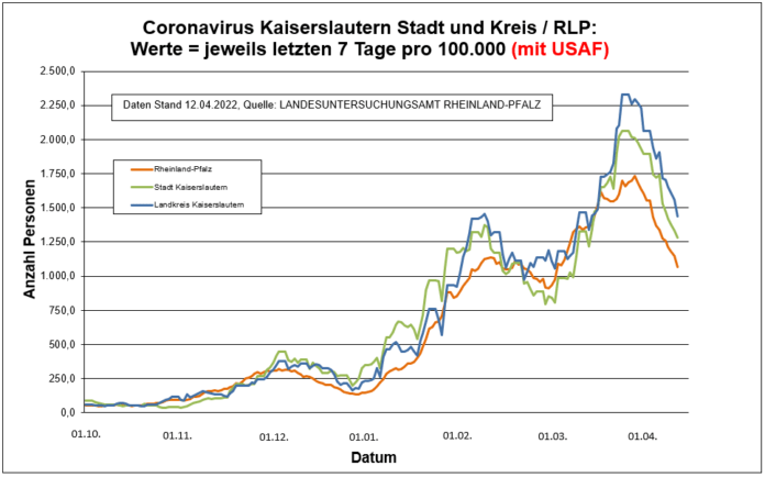 Coronavirus SARS-CoV-2: Fallzahlen für Rheinland-Pfalz, (Datenstand vom 12.04.2022, 14:10 Uhr)