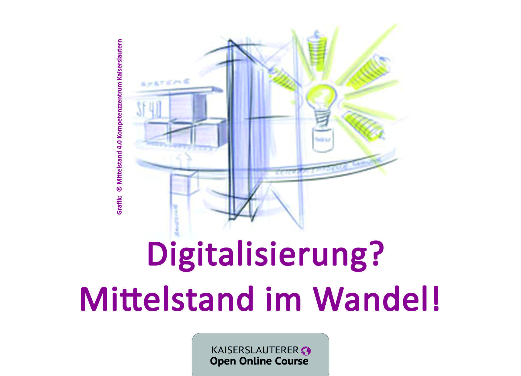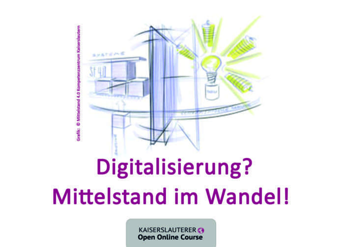 Wie kleine und mittelständische Unternehmen (KMU) den digitalen Wandel erfolgreich gestalten können, vermittelt der Kaiserslauterer Open Online Course (KLOOC) zum Thema „Digitalisierung? Mittelstand im Wandel“. Er geht unter anderem folgenden Fragen auf den Grund: Was bedeutet Künstliche Intelligenz tatsächlich? Welche Anwendungsmöglichkeiten bietet KI für mittelständische Unternehmen? Welche Veränderungen bringt die Fabrik der Zukunft für KMU mit sich? Was bedeutet dies für die Beschäftigten? Wie lassen sich digitale Reifegrade an Arbeitsplätzen umsetzen? Wie können digitale Technologien Mitarbeitenden vermittelt werden? Wie kann auf der Basis neuer Technologien wie z. B. „Production Level 4“ eine nachhaltige und kooperative Produktion ermöglicht werden? Wie lassen sich Veränderungsprozesse ausgelöst durch Digitalisierung erfolgreich ausgestalten?