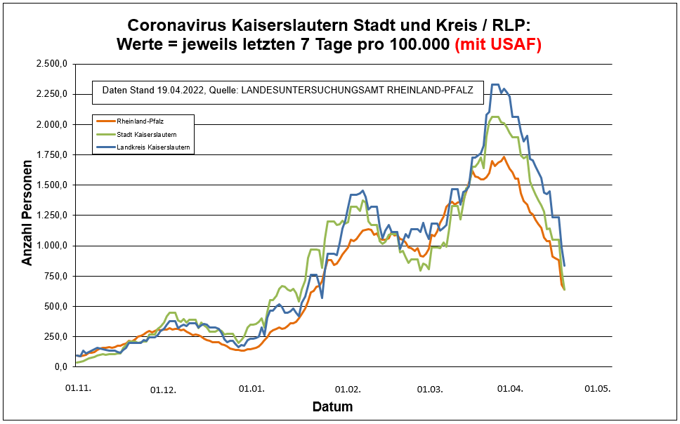 Hinweis in eigener Sache: Die Pressestelle des LUA wird nur am Ostersamstag, den 16. April 2022, Corona-Meldedaten für Rheinland-Pfalz berichten. An Karfreitag, Ostersonntag und Ostermontag werden keine Daten auf die LUA-Homepage eingestellt und keine Pressemitteilungen oder Newsletter verschickt. Am Dienstag nach Ostern steht dieser tägliche Service wieder wie gewohnt zur Verfügung. Wir bitten um Verständnis.