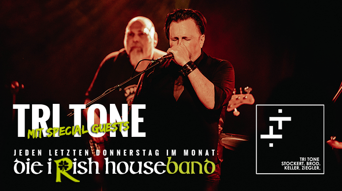 Jeden letzten Donnerstag im Monat spielt die Irishhouse Band TRI-TONE feinsten Blues und Soul mit hochkarätigen Musikern und Sängern, u.a. ist mit dabei Christian Stockert (u.a. Brass Machine), Gundy Keller, Stefan (Steppes) Brod, Bass: Wolf Ziegler u.a. Spliff etc.