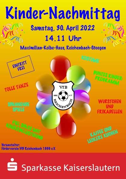 Am Samstag, 30.04.2022, findet im Maximilian-Kolbe-Haus in Reichenbach-Steegen ab 14.11 Uhr unser Kinder-Nachmittag statt. Kostümiert können sich die Kids hier bei Spiel und Spaß austoben und dabei verschiedenste Tänze unserer Tanzgruppen bestaunen.