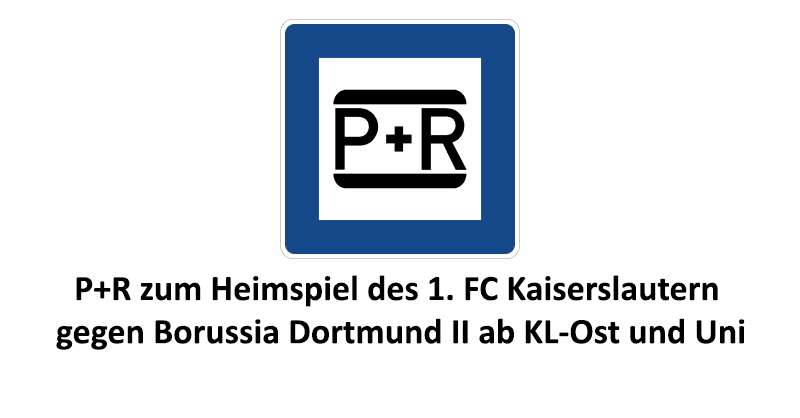 Zum Heimspiel des 1. FC Kaiserslautern gegen Borussia Dortmund II am 30.04.2022, Anpfiff um 14:00 Uhr, pendeln die P+R Busse ab KL-Ost und Universität. Aufgrund der hohen Besucherzahl verkehren die Busse beider Routen bereits ab 11:30 Uhr zum Fritz-Walter-Stadion. Wir empfehlen allen Zuschauern, wegen der Verkehrs- und Parkplatzsituation rund ums Stadion, das P+R Angebot wahrzunehmen und raten von einer individuellen Anreise ab. Alle Infos zum P+R Service gibt es auf der Homepage der SWK.