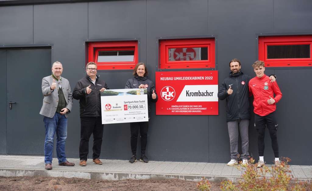 Unter dem Motto „Gemeinsam für die Zukunft des FCK“ hatte der Brauereipartner der Roten Teufel im Aktionszeitraum 1 Euro pro verkauftem Kasten Krombacher im Raum Kaiserslautern, dem Saarland, der Vorder- und der Westpfalz, Rheinhessen, der Eifel und dem Hunsrück für die Unterstützung des Nachwuchsleistungszentrums „Sportpark Rote Teufel“ gesammelt. Über 70.000 Euro kamen so zusammen, die in die Infrastruktur des Nachwuchsleistungszentrums und somit direkt in die Zukunft des FCK investiert werden konnten. Die Entscheidung fiel darauf, die finanziellen Mittel der Krombacher-Aktion für ein neues Funktionsgebäude zu verwenden und damit unter anderem zusätzliche Umkleidemöglichkeiten, eine eigene Wäscherei direkt am NLZ sowie zusätzliche Lagerräumlichkeiten für die Trainingsmittel der FCK-Talente zu schaffen.