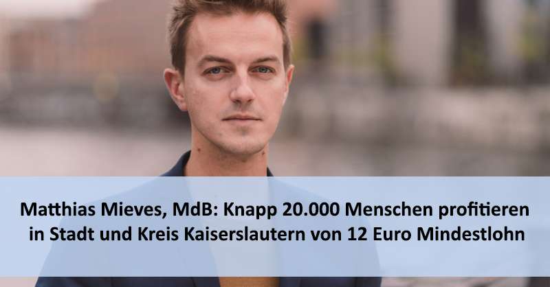 Nach einer Studie des Pestel Instituts und der Gewerkschaft Nahrung-Genuss-Gaststätten (NGG) zufolge werden voraussichtlich 19.600 Menschen in Stadt und Kreis Kaiserslautern von der kommenden Erhöhung des gesetzlichen Mindestlohns auf 12 Euro je Stunde ab dem 01. Oktober 2022 profitieren.