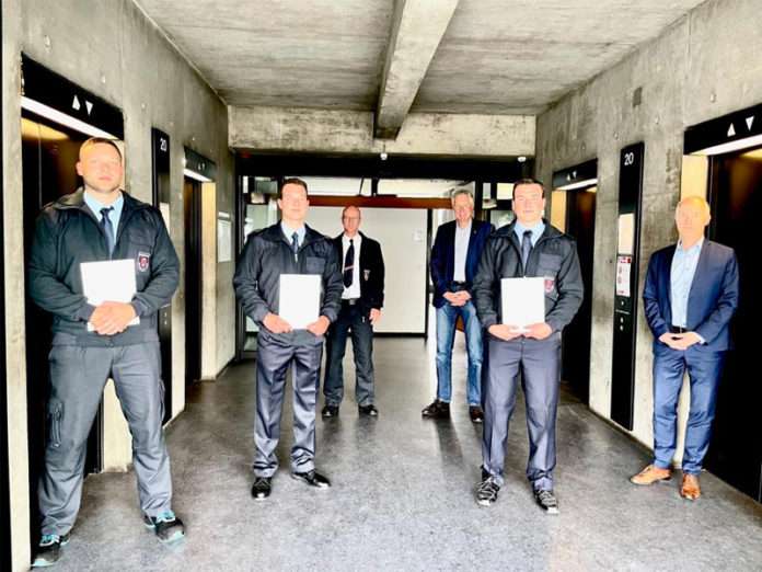 „Ich gratuliere Ihnen herzlich zu Ihrer Berufswahl und wünsche Ihnen einen guten Start in einem aufregenden Job“, hieß Kiefer die neuen Kollegen willkommen. „Unsere Feuerwehr bietet engagierten Kräften beste Perspektiven. Sie alle bringen sehr gute Voraussetzungen dafür mit, sonst würden Sie heute hier nicht stehen“, zeigte sich der Beigeordnete überzeugt. Die drei jungen Männer hatten sich im Bewerbungsgespräch unter den gut 50 Mitbewerbern durchgesetzt. Insgesamt hat die Berufsfeuerwehr derzeit rund 120 Mitarbeiterinnen und Mitarbeiter. Diese werden von rund 220 freiwilligen Feuerwehrleuten tatkräftig unterstützt.