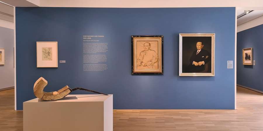 Bu: Blick in die Ausstellung „Vom Zauber der Handbewegung“: Arbeiten von Otto Dix und eine Plastik von Franz Bernhard