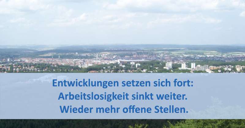 In der Stadt Kaiserslautern waren im April 4.336 Männer und Frauen bei der Agentur für Arbeit und dem Jobcenter arbeitslos gemeldet. Das waren 18 bzw. 0,4 Prozent weniger als im März und 837 bzw. 16,2 Prozent weniger als im April des vergangenen Jahres. Die Arbeitslosenquote wurde wie im Vormonat mit acht Prozent angegeben. Im Vergleich zum Vorjahresmonat ist sie um 1,4 Prozentpunkte zurückgegangen. Dem Arbeitgeber-Service wurden in den vergangenen vier Wochen von den Arbeitgebern aus der Stadt Kaiserslautern 339 zu besetzende Stellen gemeldet. Das waren 20 weniger als im März und 91 weniger als im April des vergangenen Jahres. Zum Zähltag befanden sich 2.331 offene Stellen im Bestand.