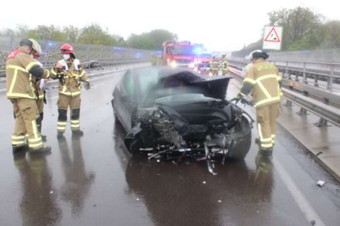 Aufgrund nicht angepasster Geschwindigkeit verlor gestern Vormittag (05.05.2022,08:30 Uhr) ein erst 18-jähriger Fahrer eines Tesla Model 3 auf regennasser Fahrbahn auf der Lautertalbrücke in Richtung Saarbrücken die Kontrolle über sein Fahrzeug, schleuderte zunächst nach links in die Mittelschutzplanke, drehte sich und stieß frontal in die rechte Schutzplanke. Anschließend wurde der Tesla von einem US -Truck, der auf dem rechten Fahrstreifen fuhr, erfasst und am Heck erwischt. Der Lkw schob den Tesla auf den linken Fahrstreifen, wo er schließlich zum Stehen kam. Der 18-jährige Fahrer und sein ebenfalls 18-jähriger Beifahrer wurden leicht verletzt. Beide wurden vorsorglich vom Rettungsdienst ins Westpfalzklinikum verbracht. Zur Sicherung des Brandschutzes war die Berufsfeuerwehr Kaiserslautern mit einem Löschzug im Einsatz. Am Tesla entstand Totalschaden. Der US-Militär-Lkw wurde nur leicht beschädigt und war weiter fahrbereit. Es entstand Sachschaden von ca. 60.000 EUR. Die Autobahn war für die Dauer der Unfallaufnahme in Richtung Saarbrücken kurzfristig voll gesperrt.