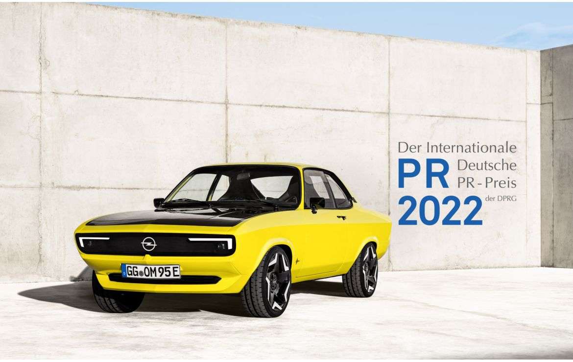 Der Internationale Deutsche PR-Preis in der Kategorie „Marketing-Kommunikation“ geht an Opel. Die Jury der DPRG (Deutsche Public Relations Gesellschaft) zeichnet Projekt und Präsentation eines einzigartigen Autos made in Rüsselsheim aus: Der Opel Manta GSe ElektroMOD verbindet das Beste aus zwei Welten, den klassischen Auftritt einer Stilikone kombiniert mit modernster Technologie für einen nachhaltigen Einsatz. Denn der Manta ist als GSe ElektroMOD zukunftssicher: elektrisch, emissionsfrei und zugleich voller Emotionen.