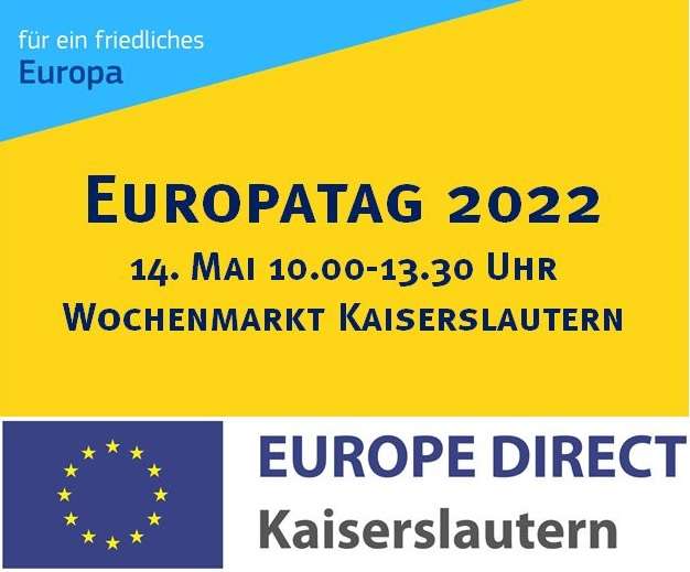 Das Europa Direkt Informationszentrum (EDI) Kaiserslautern freut sich, nach zwei Jahren pandemiebedingter Pause nun endlich wieder den Europatag (9. Mai 2022) gemeinsam mit den Bürgerinnen und Bürgern in der Innenstadt begehen zu können. Am Samstag, 14. Mai 2022, lädt das EDI von 10.00 Uhr bis 13.30 auf den Wochenmarkt ein. Am Infostand stehen die Mitarbeiterinnen und Mitarbeiter gerne bereit, um sich mit Besucherinnen und Besuchern über aktuelle Europathemen auszutauschen. Darüber hinaus gibt es Mitmachaktionen für Alle sowie die Möglichkeit, attraktive Preise in Form von Gutscheinen für Produkte der Wochenmarktbeschicker zu gewinnen. Dazu müssen nur Fragen am EU-Quizrad richtig beantwortet werden. Die Marktbeschicker „Spezialitäten Kirbas“, Imbiss Boll, Feinkost Conrad, Früchte Wenger und Backhaus Scheidt beteiligen sich freundlicherweise an dieser Aktion.