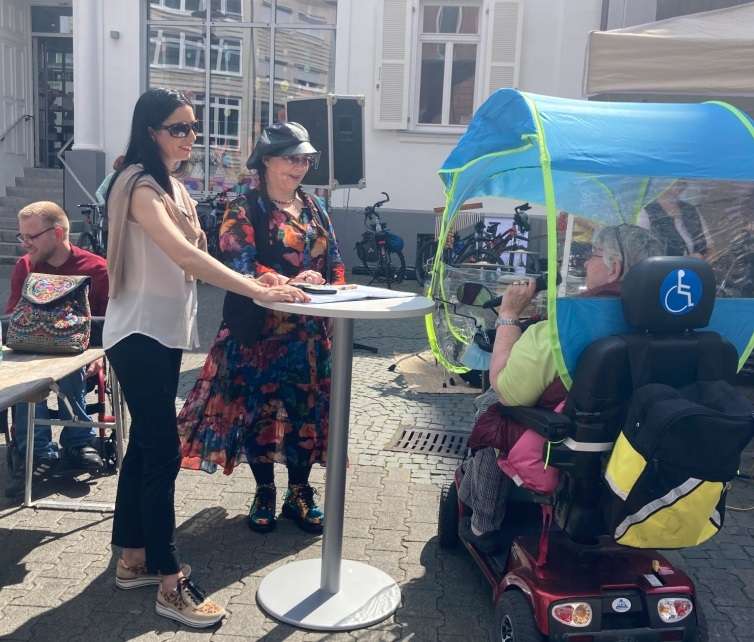 Eine kleine Gesprächsrunde, moderiert von Marina Tamassy, bekannt als Mitglied der Lautrer Kabarettgruppe „Die Untiere“, rundete den rundum gelungenen Aktionstag ab. Sie interviewte unter anderem die städtische Beigeordnete und Sozialdezernentin Anja Pfeiffer, die vom aktuellen Umsetzungsstand der zahlreichen Maßnahmen zur Verbesserung der Barrierefreiheit berichtete. „Niemand sollte aufgrund seiner Behinderung benachteiligt oder ausgegrenzt werden. Barrierefreiheit und Inklusion sind große Ziele, doch ich kann zusichern: Wir machen uns auf den Weg und wollen die Dinge Stück für Stück verbessern“, so Pfeiffer. Sie verwies darauf, dass kürzlich im Stadtrat verschiedene Anträge zum Thema Barrierefreiheit beschlossen wurden, allerdings gebe es „noch sehr viel zu tun.“