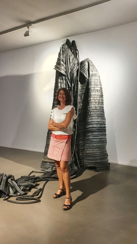 Fritzi Haußmann, 1970 in Frankenthal geboren, studierte an der Hochschule Wiesbaden Kommunikationsdesign mit Schwerpunkt Freie Grafik sowie Freie Kunst an der Kunstakademie Mannheim. Sie lebt und arbeitet in Frankenthal und Mannheim. Mit ihren raumgreifenden Objekten und Installationen schafft die Künstlerin spezifische Orte, die sie durch ihr künstlerisches Eingreifen energetisch auflädt. Für ihre ortsbezogene, aus gebrauchten Fahrradschläuchen bestehende Arbeit „tube object“, die sich von der Decke über die Wand auf den Boden ausdehnt, wurde ihr der Pfalzpreis zugesprochen. Haußmann reagiert auf architektonische Gegebenheiten und vermag dadurch die Wahrnehmung einer neuen, veränderten Raumsituation in den Mittelpunkt ihrer Aussage zu stellen. Und sie geht noch einen Schritt weiter: Durch Performances und Interaktionen verkörpern ihre Objekte lebendig und anschaulich eine ortsungebundene Auffassung plastischen Gestaltens.